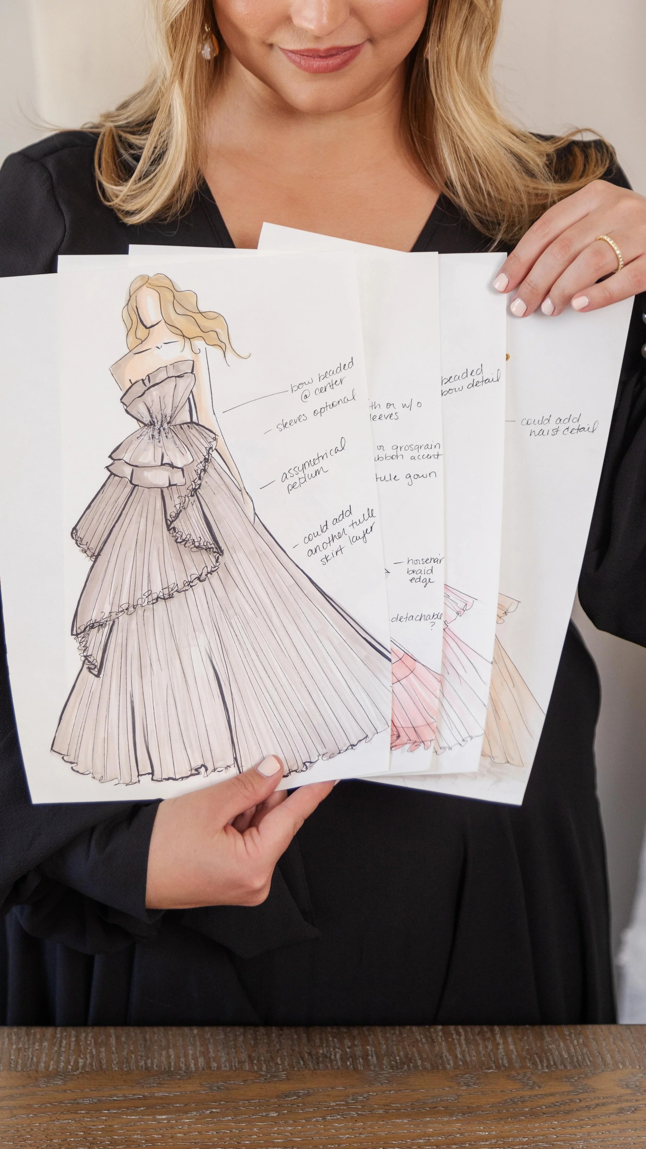 Your design consultation will take place either by video conference or in person. During this initial meeting, we will explore your vision, ideas, and the finer details of your dream dress. This is your opportunity to express your personality, preferences, and wedding style. Based on your vision, I will offer expert guidance, create preliminary sketches and help shape the direction of your design. After the consultation, You will receive a personalized design proposal that will bring your wedding dress to life.